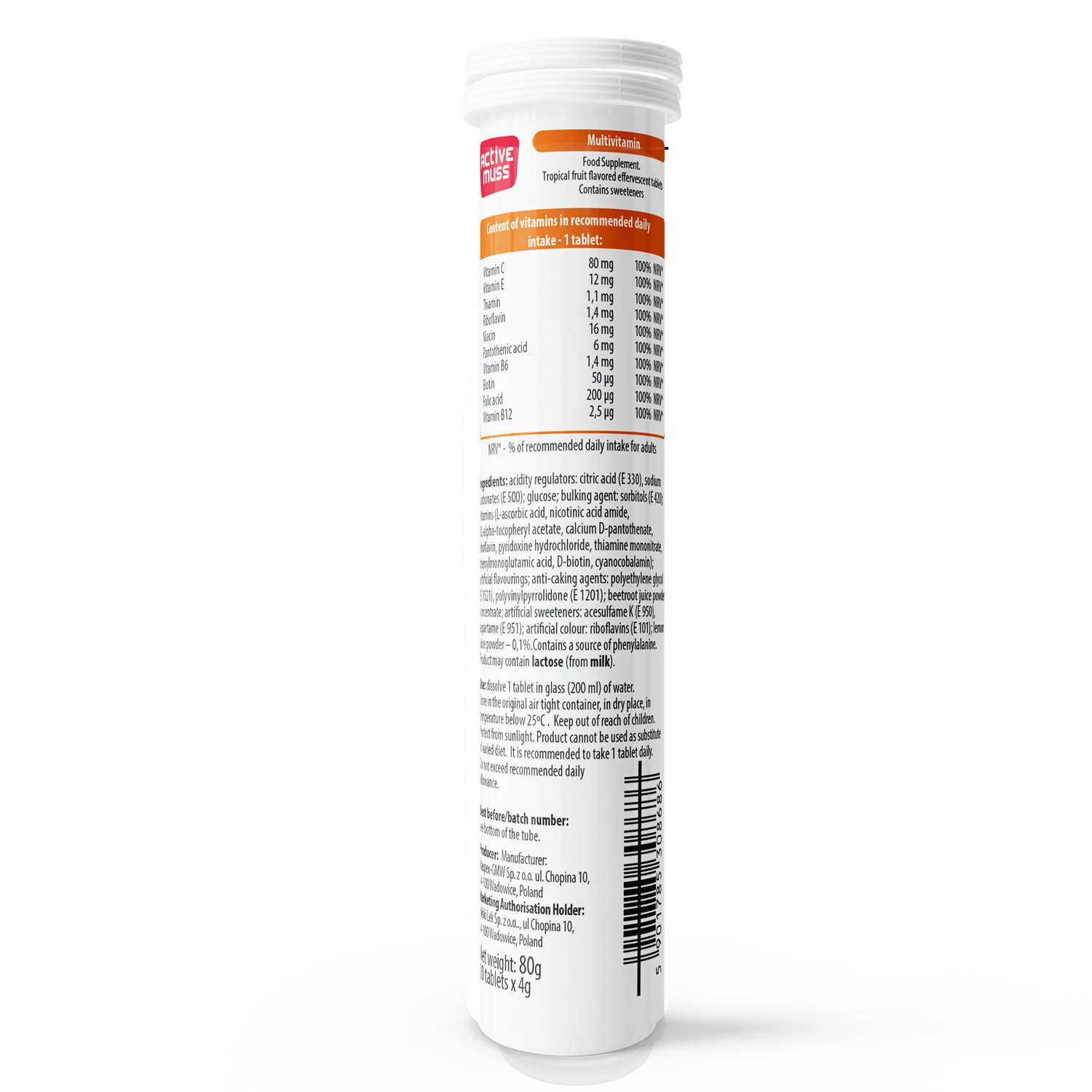 Với việc hỗ trợ bổ sung một loạt các vitamin cần thiết, viên sủi Activemuss Multivitamin là một lựa chọn tốt để tăng cường sức khỏe toàn diện và bảo vệ cơ thể khỏi thiếu hụt vitamin. Dành cho người trưởng thành có nhu cầu bổ sung vitamin, sản phẩm này giúp bạn duy trì một cuộc sống khỏe mạnh và năng động.