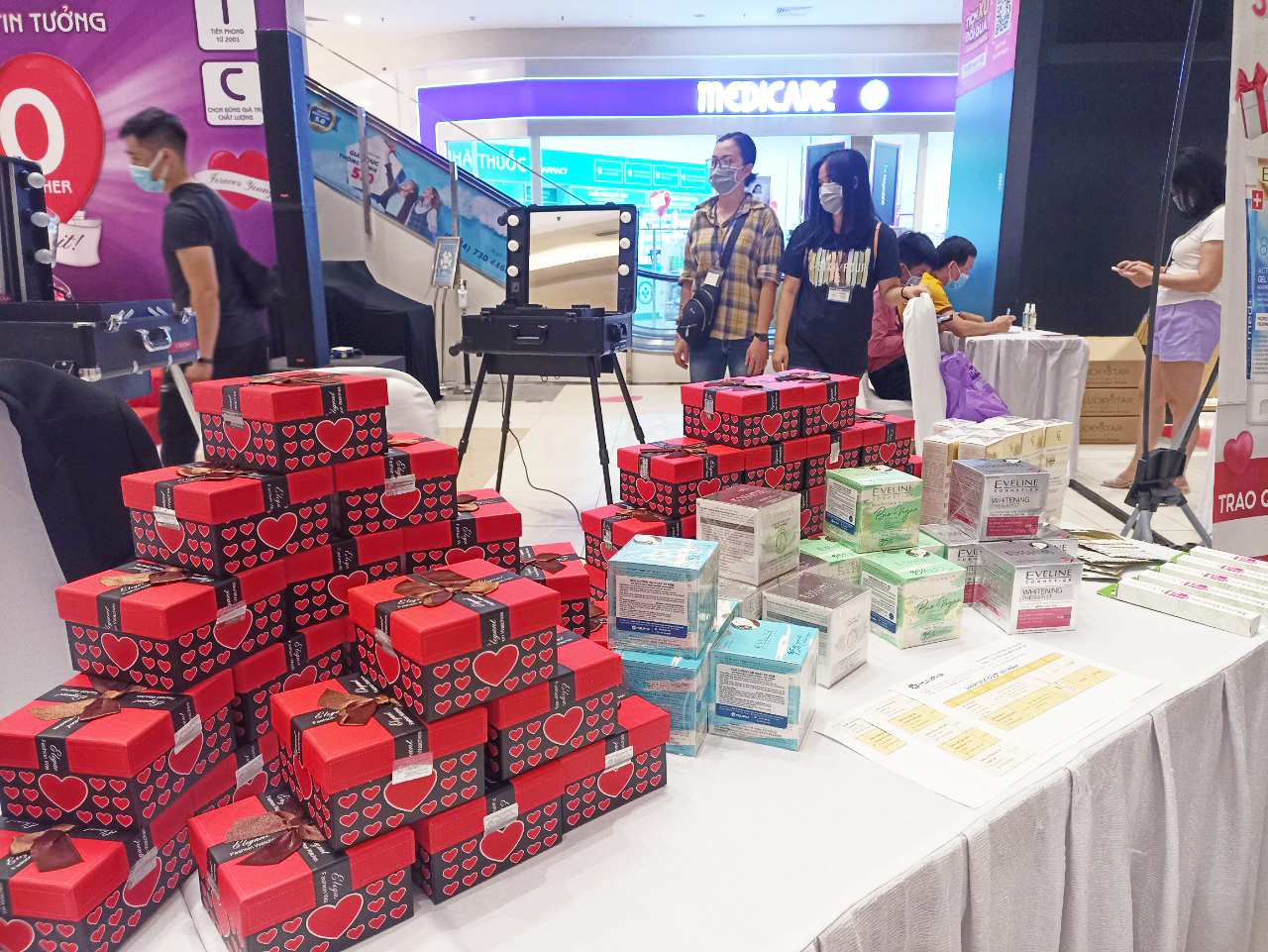 Check in ngay không khí náo nhiệt tại gian hàng Eveline chính hãng, khách hàng có cơ hội trải nghiệm miễn phí các dịch vụ như: soi da, tư vấn chăm sóc da, tư vấn sức khỏe,...