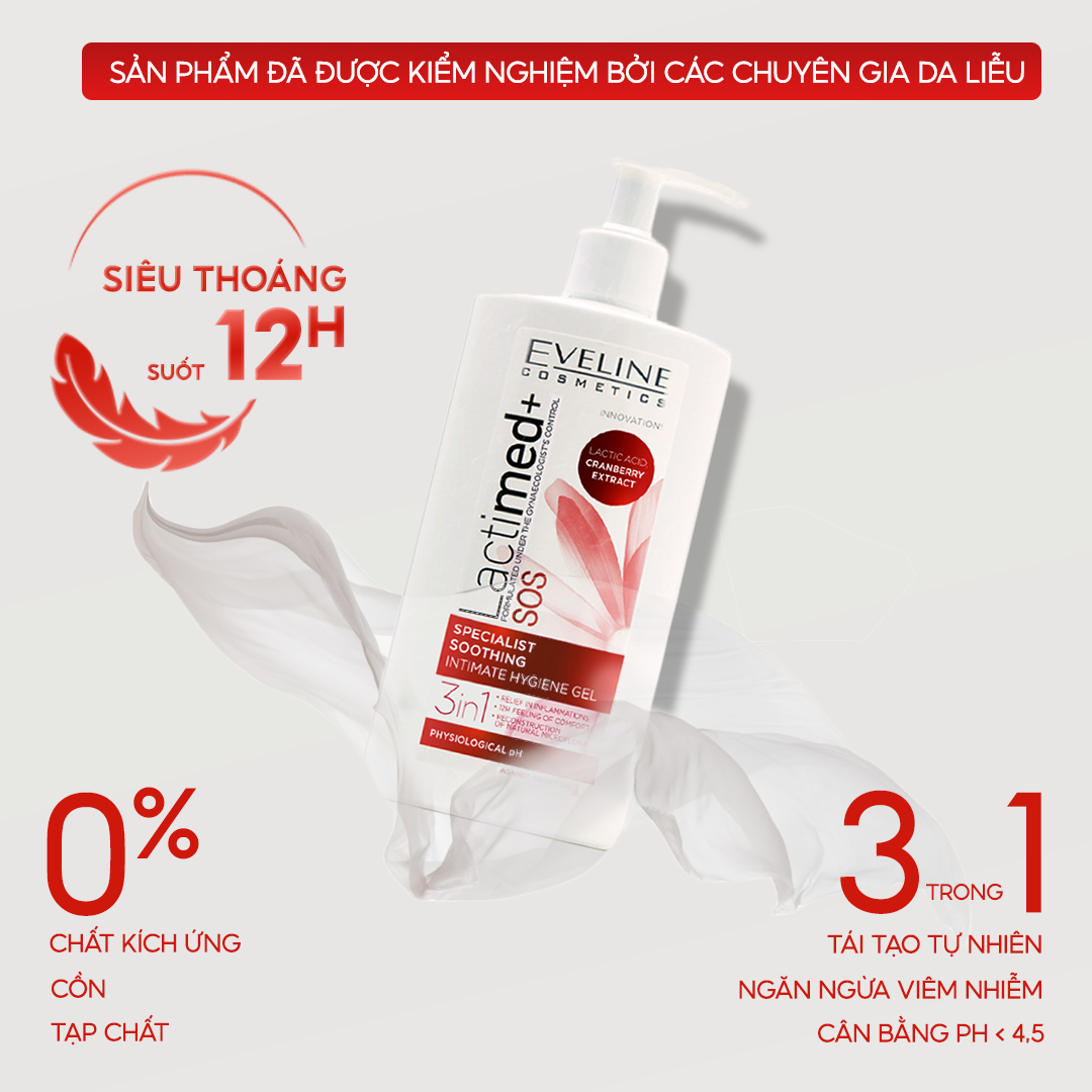 Gel vệ sinh phụ nữ Lactimed 3in1 Eveline là sản phẩm chăm sóc vùng kín tuyệt vời, được tạo ra để mang lại sự sạch sẽ, thoải mái và bảo vệ tối đa cho vùng kín phòng bệnh tiết niệu, phụ khoa. Với sự kết hợp hoàn hảo của chiết xuất nam việt quất, axit lactic và D-panthenol, không chỉ làm sạch nhẹ nhàng mà còn cung cấp các lợi ích vượt trội giữ cho vùng kín luôn khỏe mạnh.
