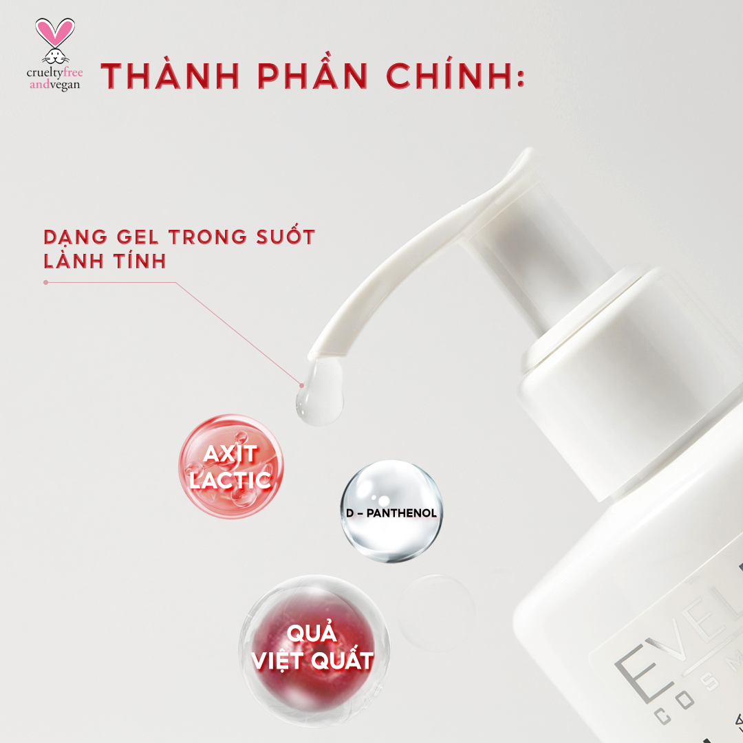 | Thành phần hoạt tính | Axit lactic, Chiết xuất nam việt quất (cranberry), D-panthenol. |