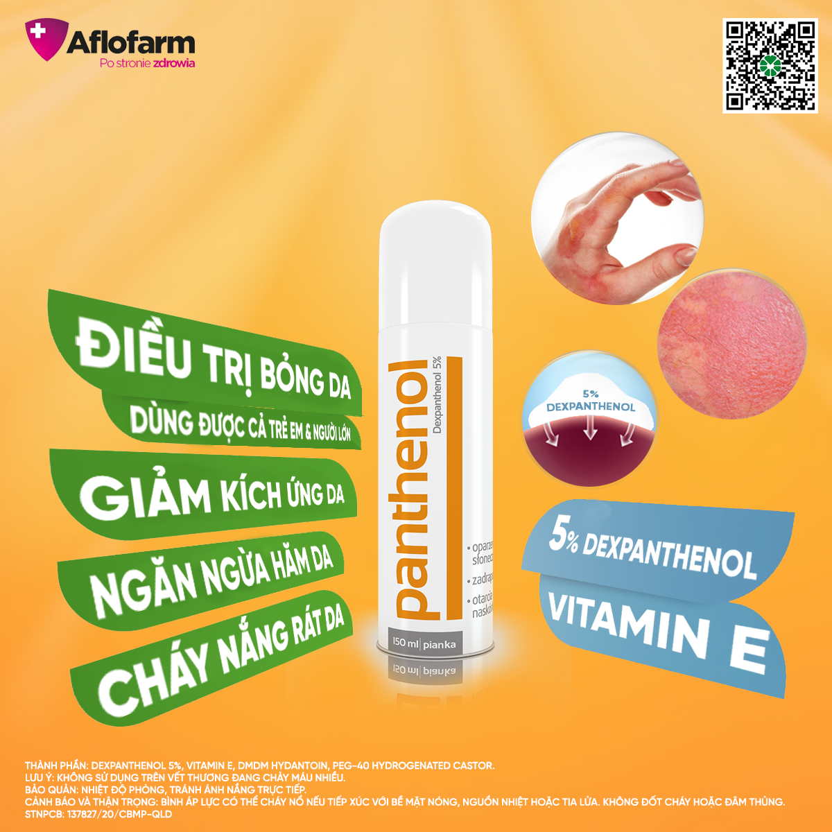 3. Bảo vệ và chăm sóc da: Xịt bỏng Panthenol Foam cung cấp độ ẩm và dưỡng chất cần thiết cho da bị tổn thương, giúp duy trì sự mềm mại và khỏe mạnh của da.